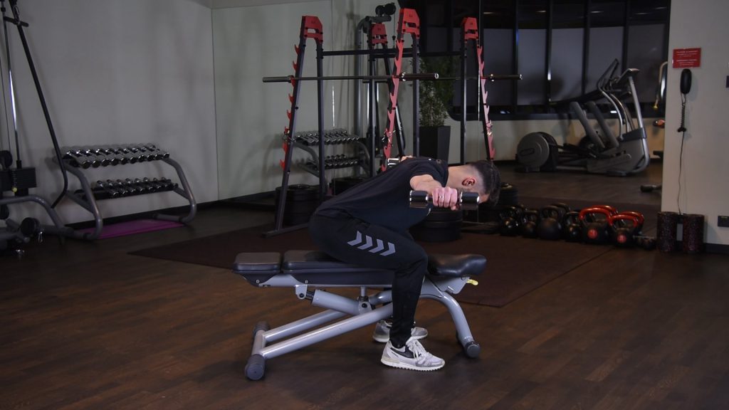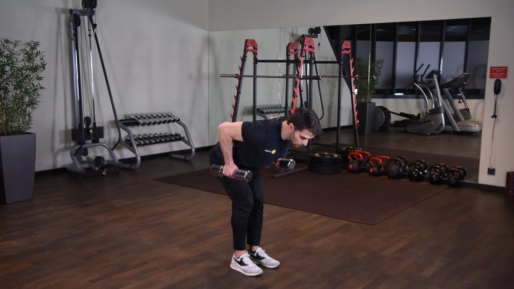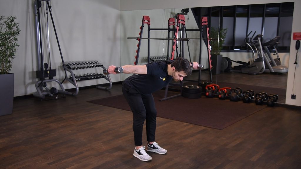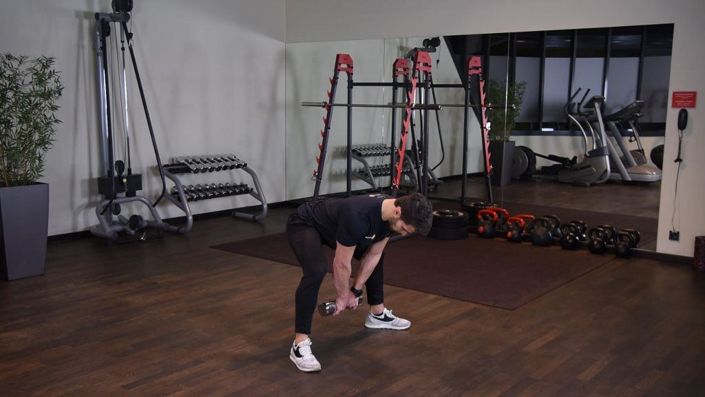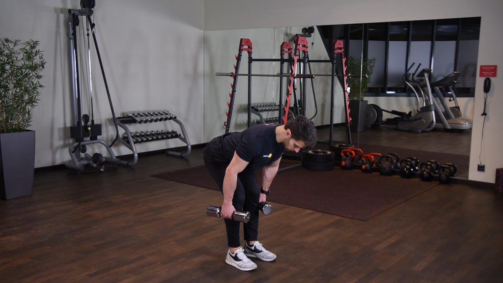 Prostowanie ramion z hantlami w opadzie tułowia 0 (0)