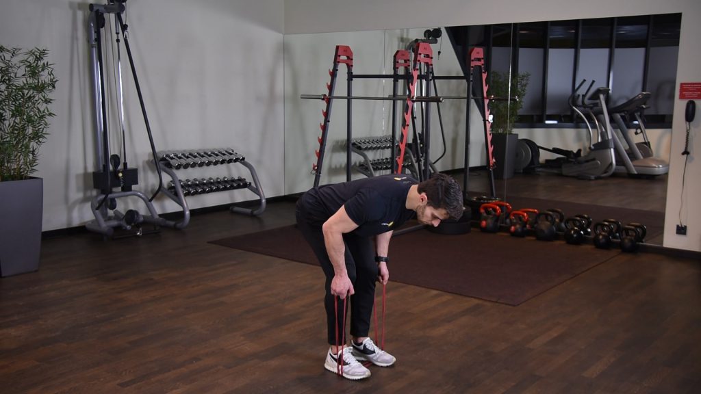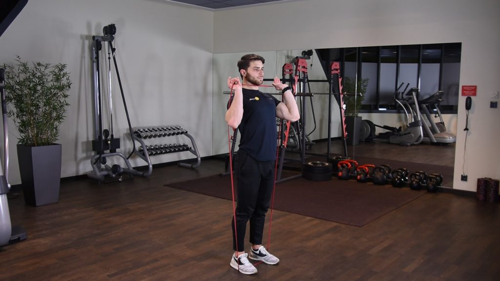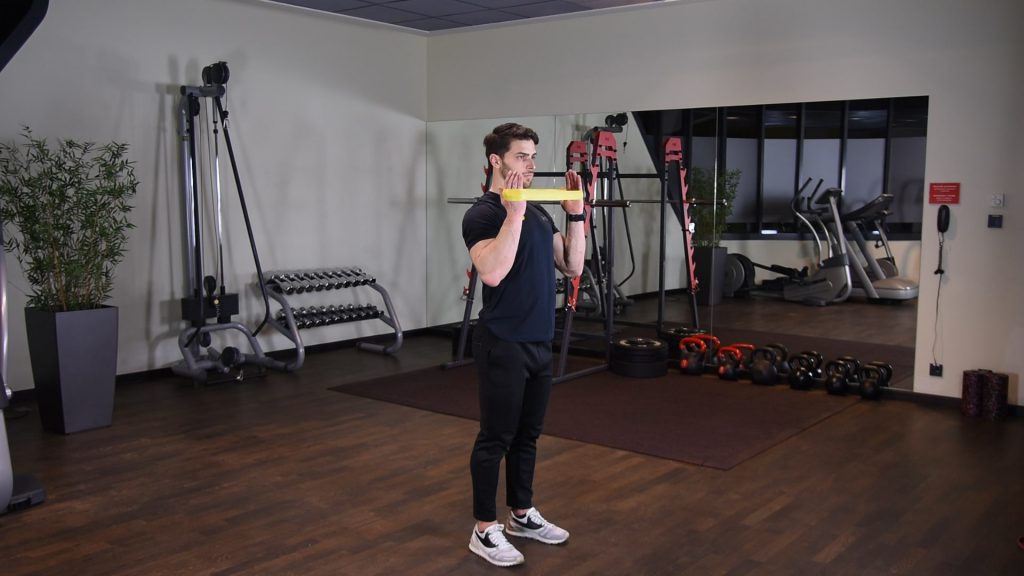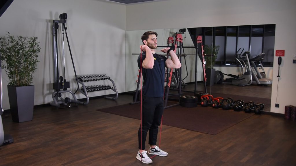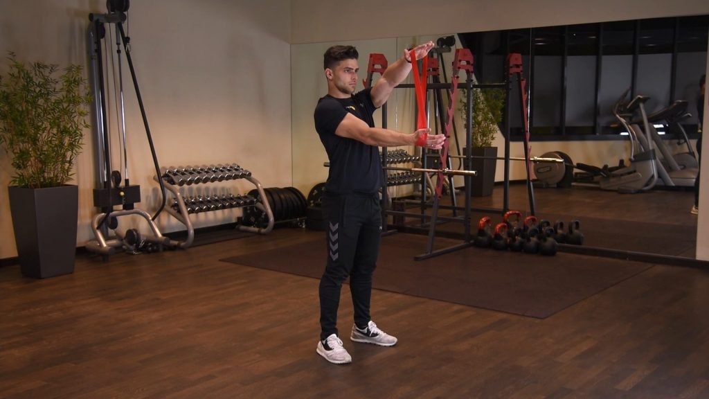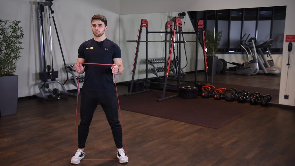 Naprzemienne uginanie ramion z gumą power band w staniu 0 (0)
