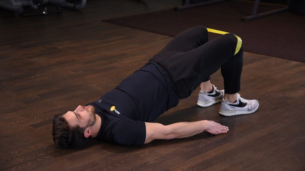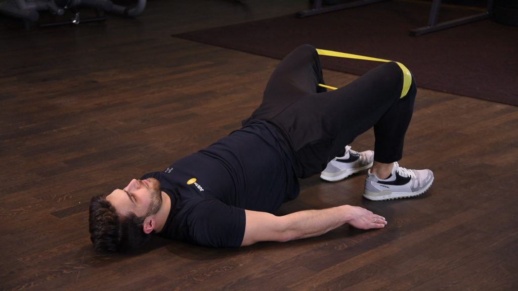 Odwodzenie kolan we wznosie bioder z gumą mini band na kolanach 0 (0)