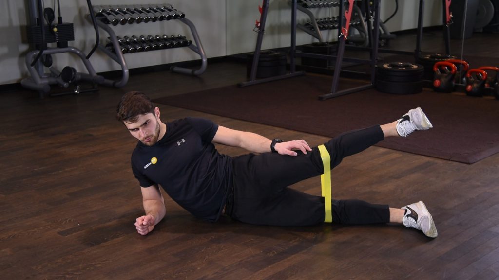Rozciąganie przywodzicieli uda leżąc z gumą power band 0 (0)