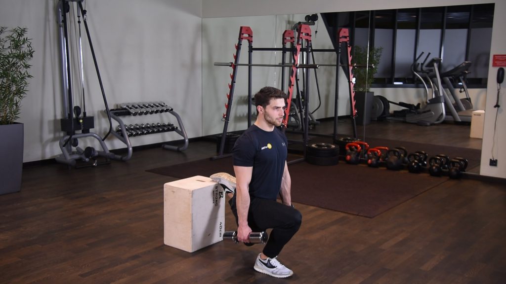 Przysiad na jednej nodze z hantlą – pistol squat z hantlą 0 (0)