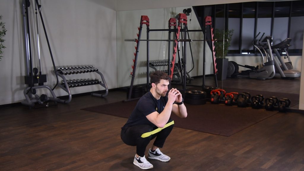 Przysiad z gumą power band z przodu 0 (0)