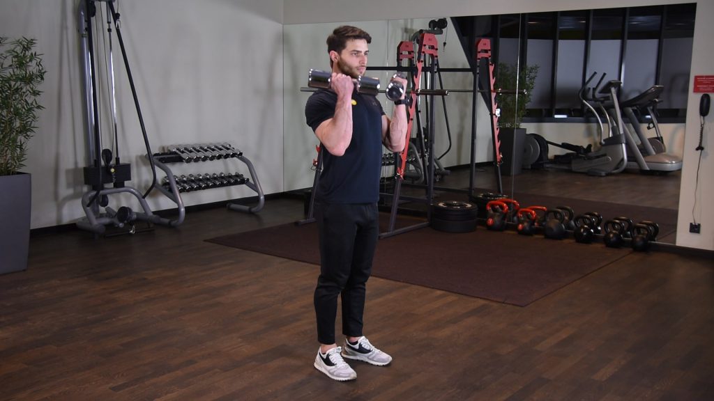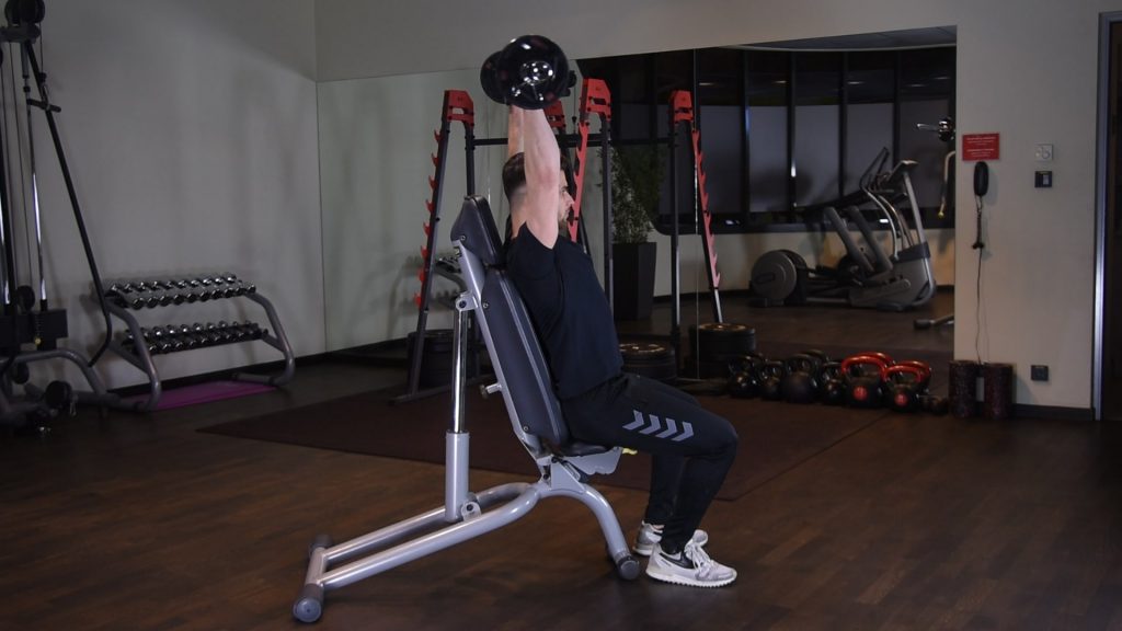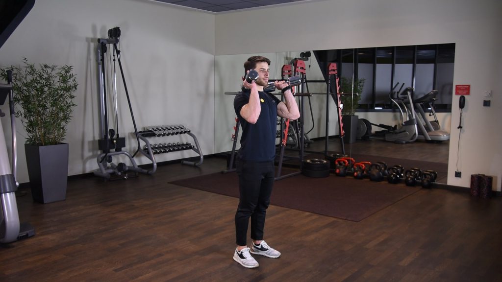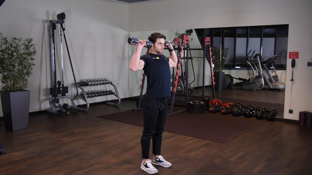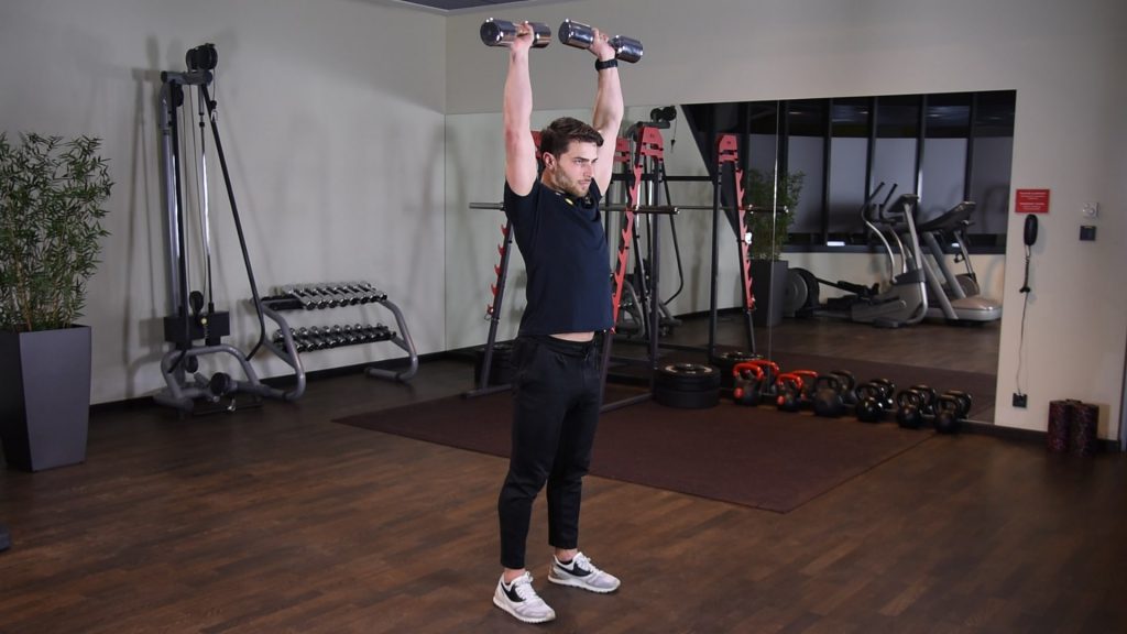 OHP – wyciskanie żołnierskie hantlami – wyciskanie hantli nad głowę szeroko 0 (0)
