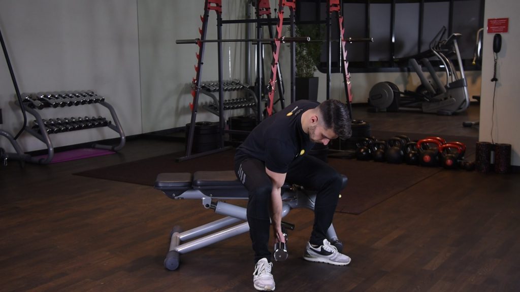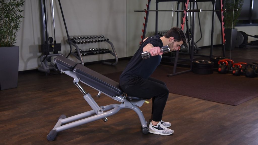 Zginanie nadgarstka z hantlą w oparciu 0 (0)