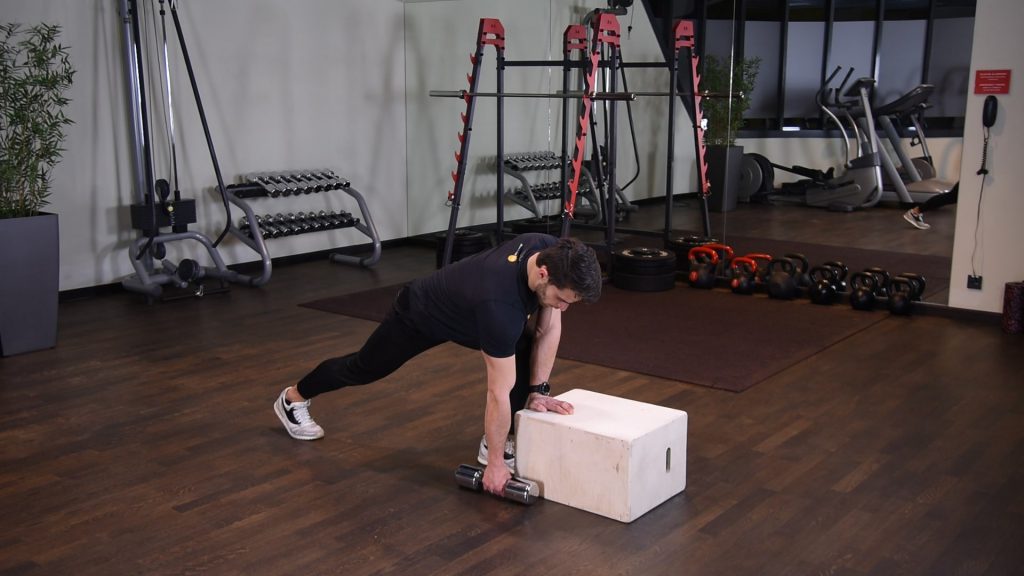 Wiosłowanie hantlą w oparciu o podwyższenie 0 (0)