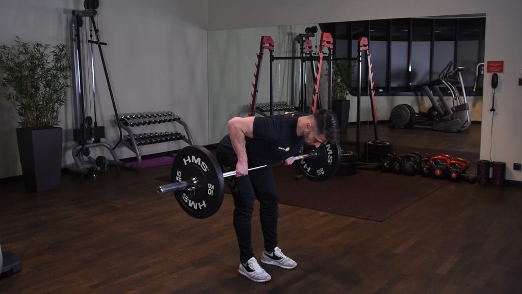 Wiosłowanie ze sztangą w opadzie tułowia podchwytem 0 (0)