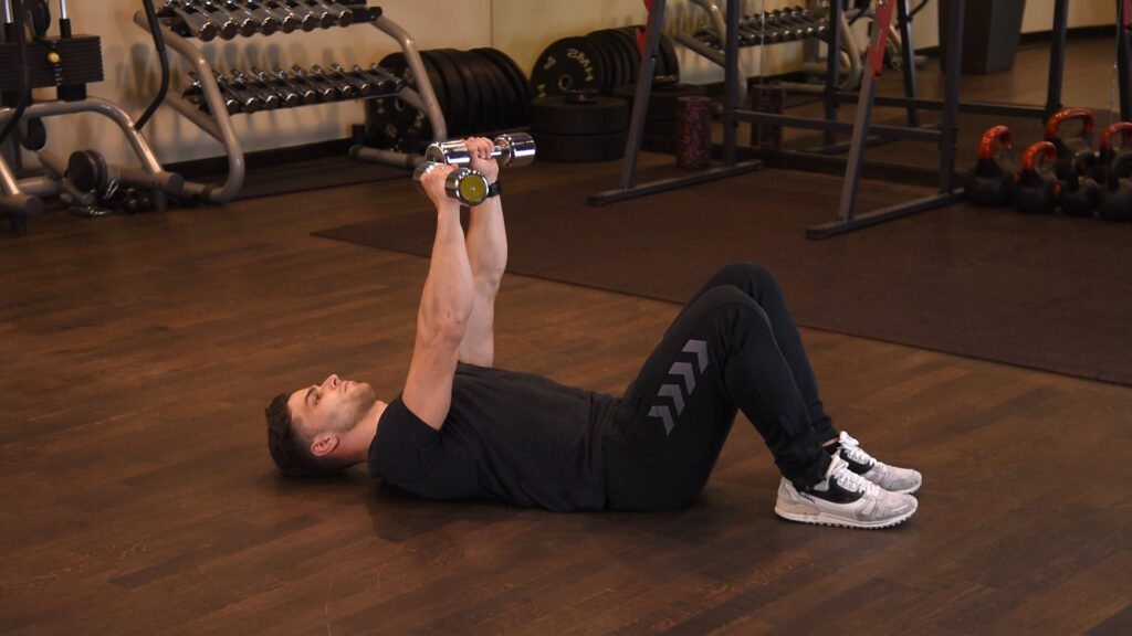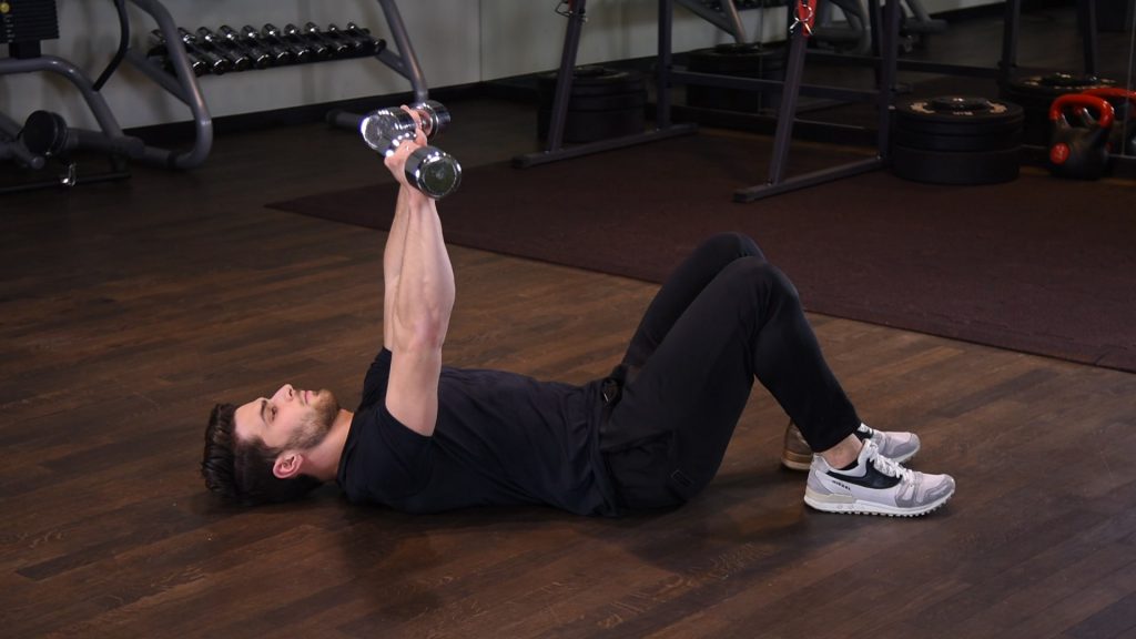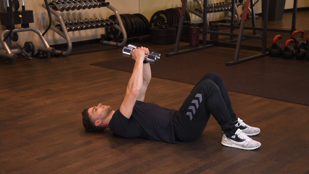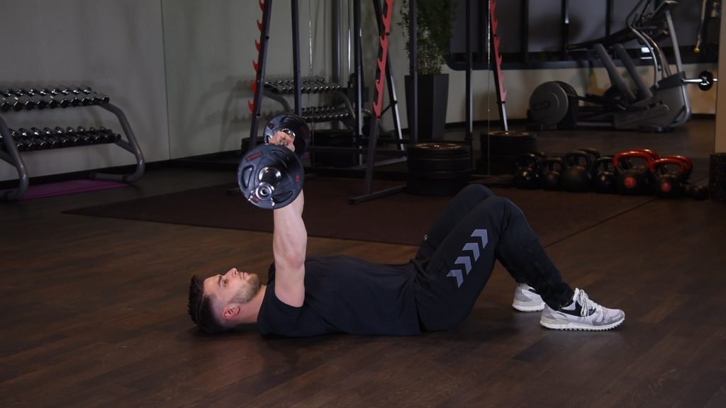 Wyciskanie francuskie z hantlami w leżeniu na podłodze 0 (0)