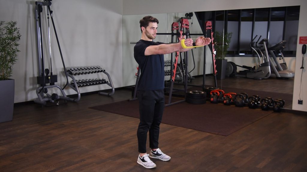 Unoszenie ramion do przodu stojąc z gumą power band 0 (0)