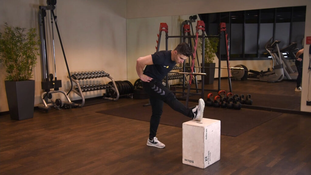 Rozciąganie tyłu uda z nogą na podwyższeniu 0 (0)